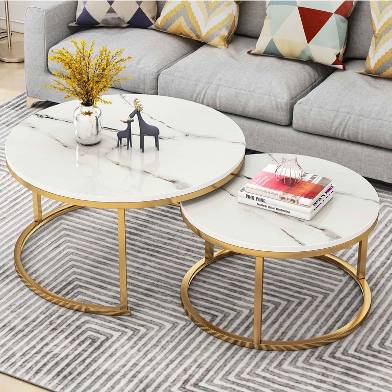 2 In 1 Nordic Coffee Table Modern Living Room Table Twin 2pcs Set Round Table Shopee Singapore