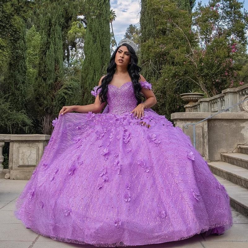3d Flower Lilac Sweet 15 Dress Off The Shoulder Quince Dress 66601 Viniodress